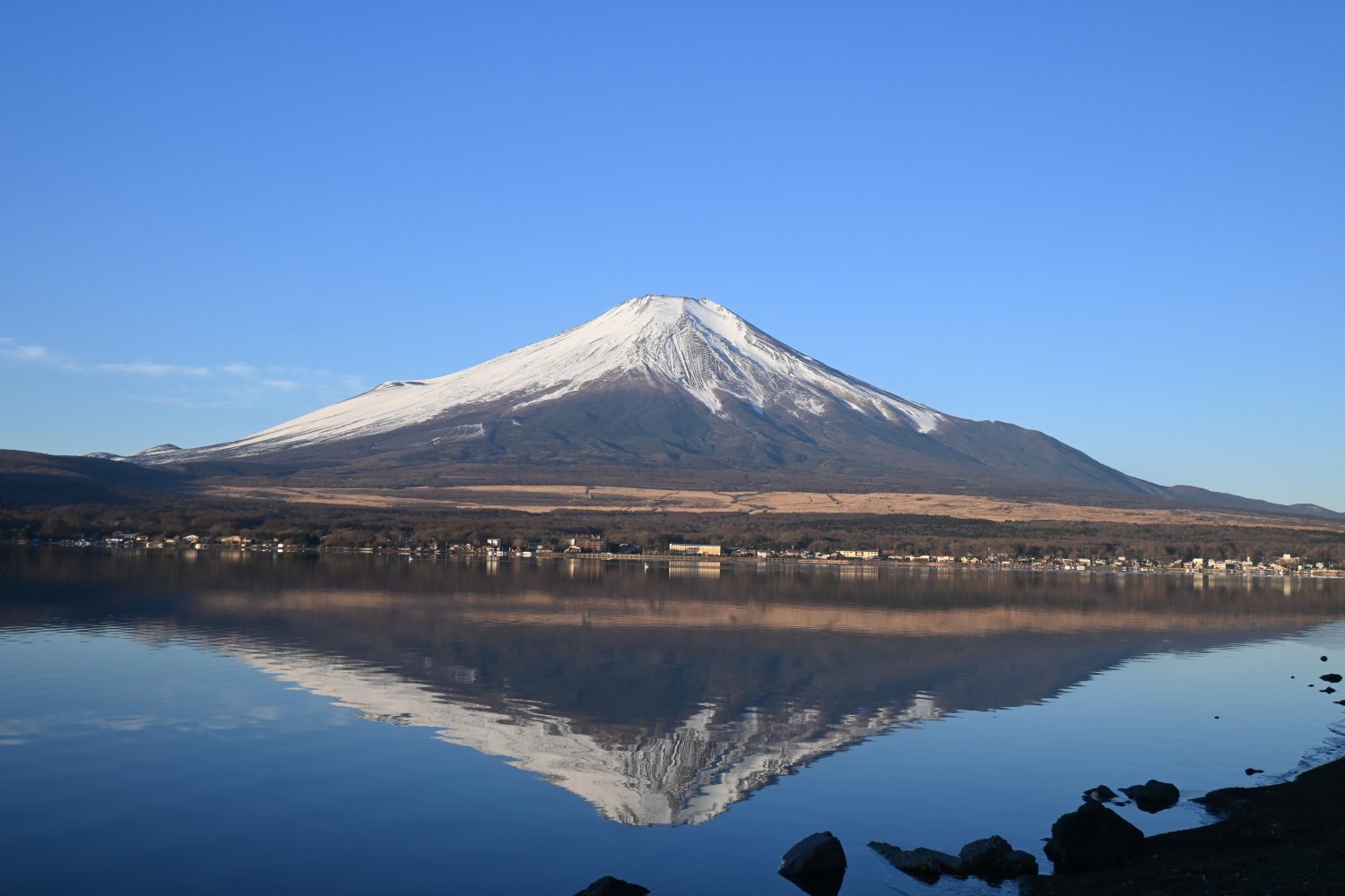 Benifuji can be seen at sunrise from Lake Yamanaka, but it requires a clear sky with no clouds blocking the sunlight from reaching Mt. Fuji.