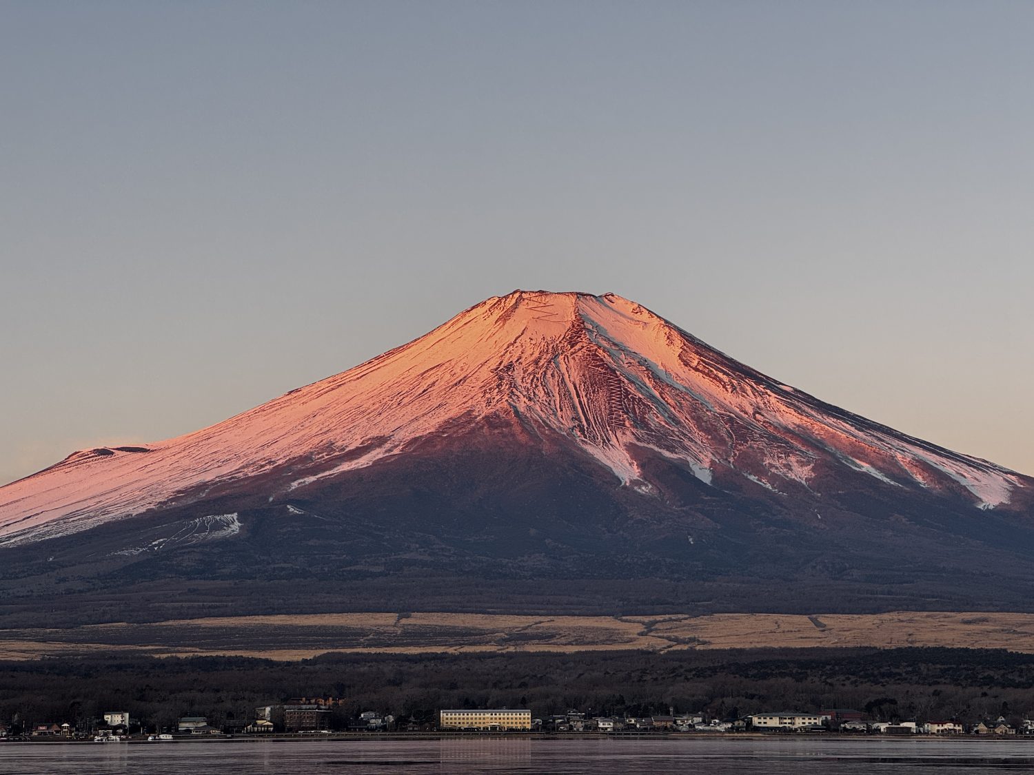 The brilliantly glowing red Mt. Fuji quickly returned to its original appearance